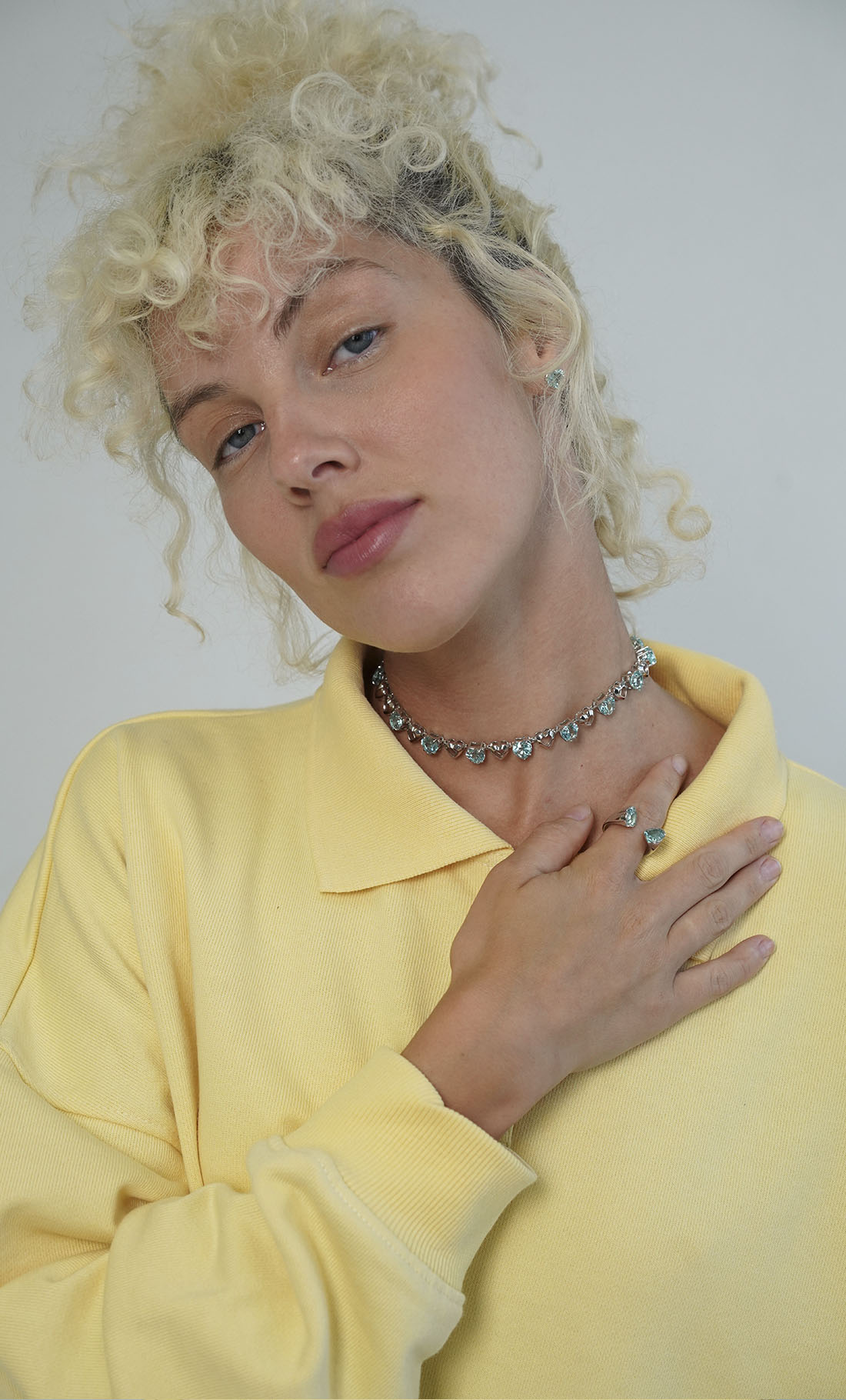 HEART BEAT | Свет (белый родии с голубыми топазами): Это сердцебиение ясного дня. Ритм, в котором хочется мечтать, флиртовать и быть открытой миру.