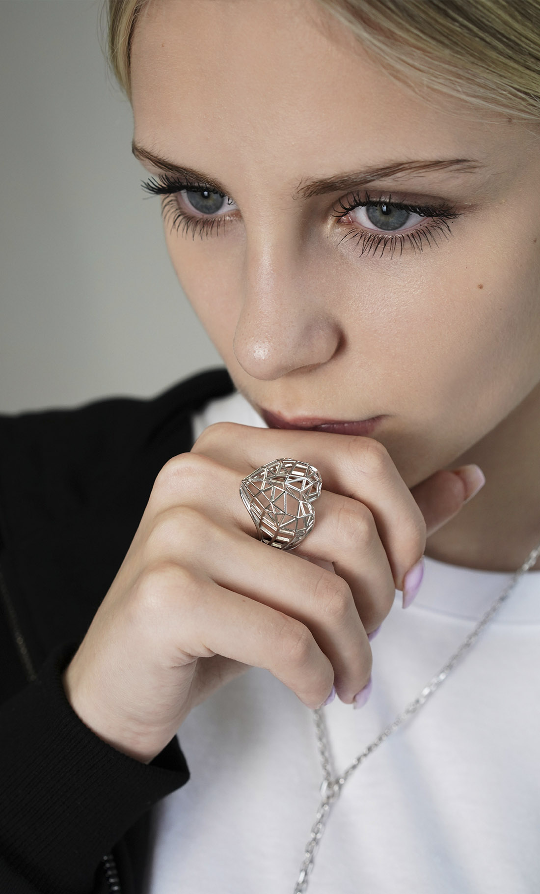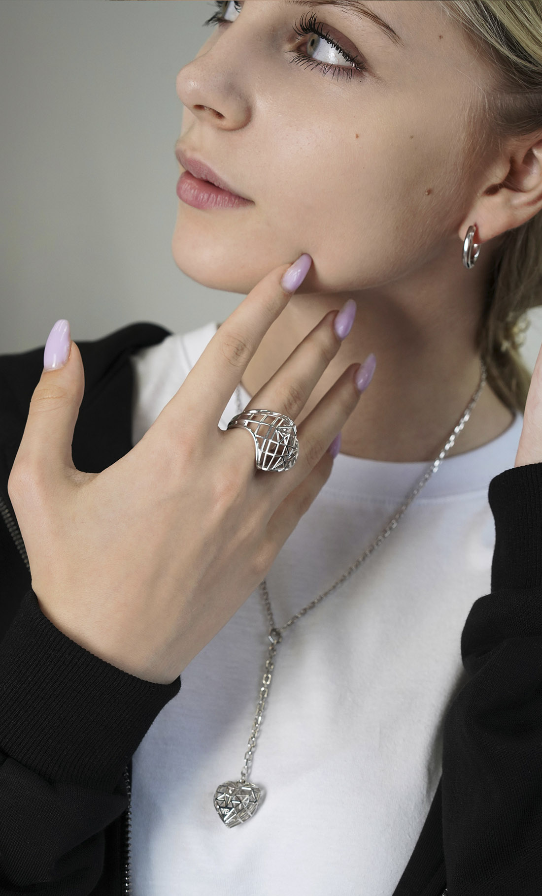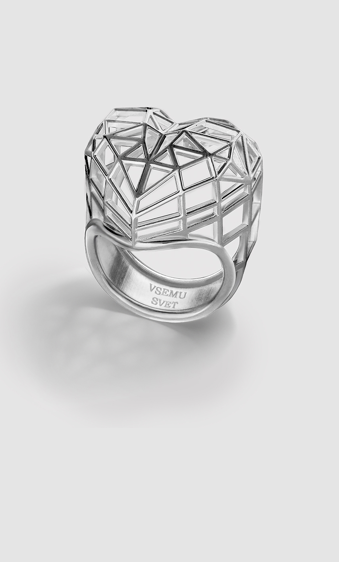 Кольцо MY HEART — это твое смелое и честное заявление. Его нарочито большой, но воздушный объем — не про эго, а про открытость. Это визуальное признание: "Да, мое сердце именно такое — огромное, живое и ни на что не похожее". Каркасная, почти невесомая структура символизирует свободу — такое сердце не прячут, им дышат.