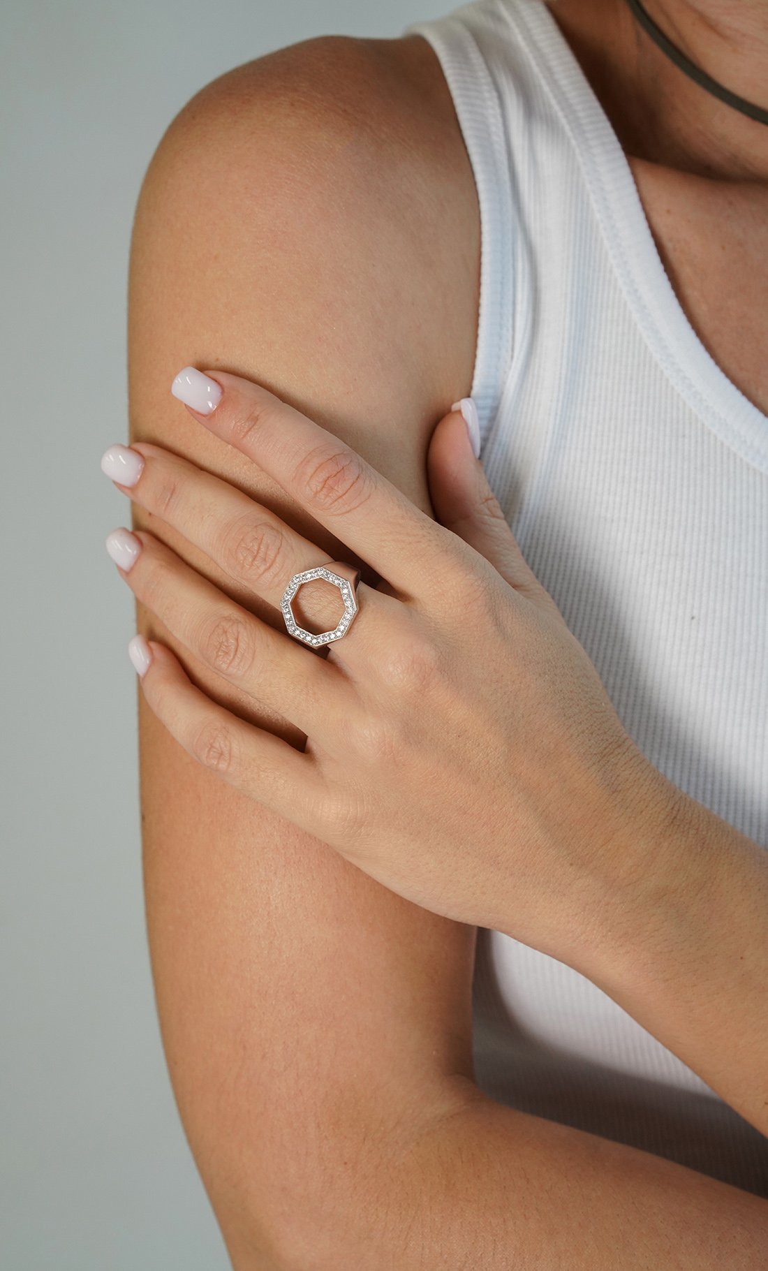 Уверенная и массивная форма кольца PORTAL заявляет о твоем праве быть. Быть заметной, быть весомой, быть собой без извинений.