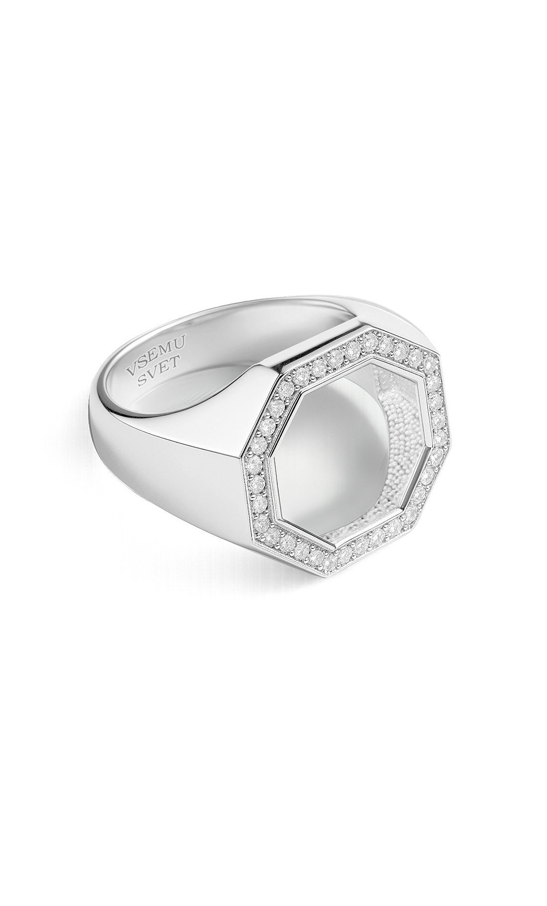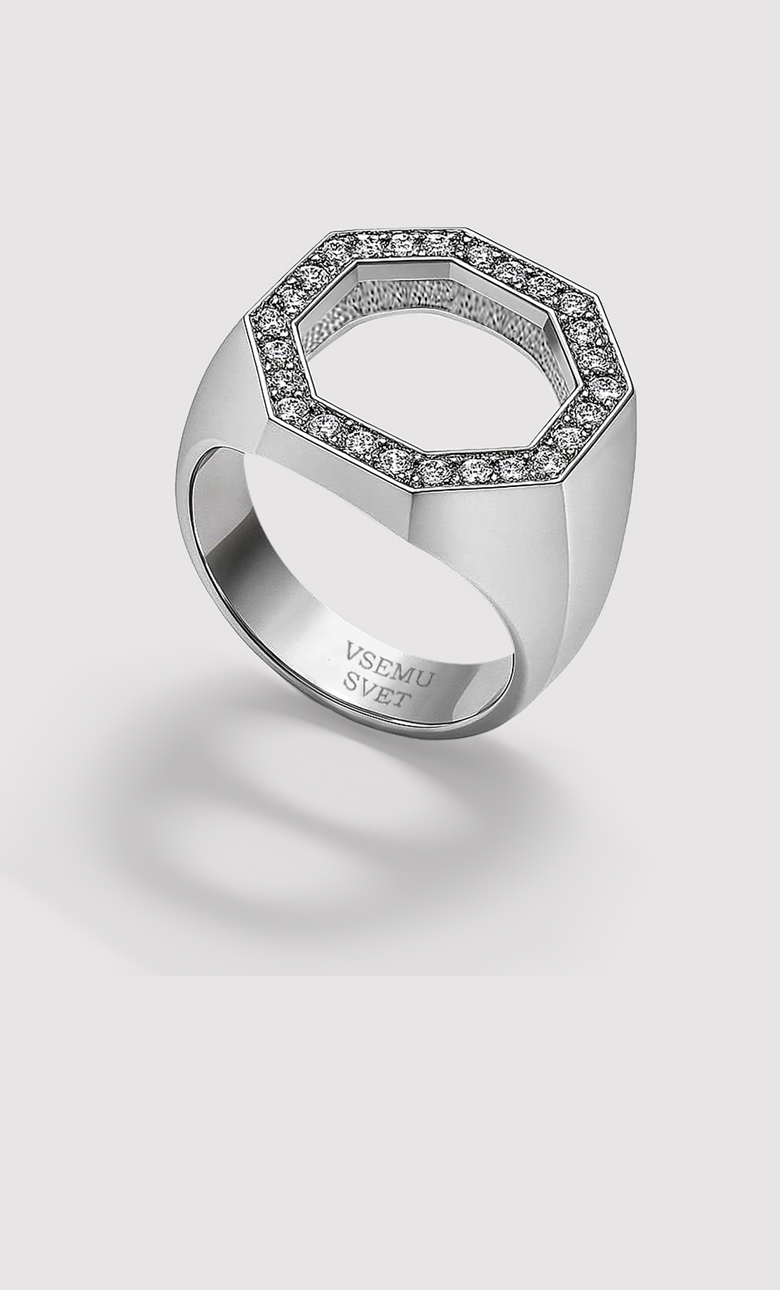 А в центре — самое главное. Сквозное окно. Это портал к твоей истине, твоя точка честности с собой. Это смелость заглянуть внутрь и принять все, что ты там увидишь: и свет, и тень. Кольцо PORTAL — это физическое напоминание о том, что твоя самая большая сила заключается в балансе всех твоих граней.