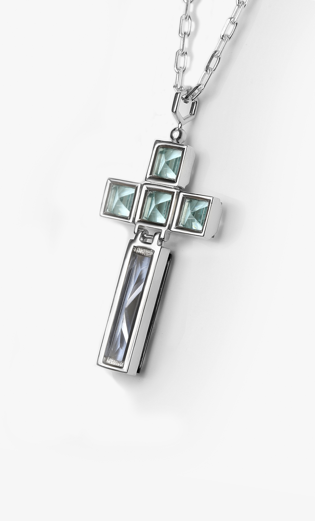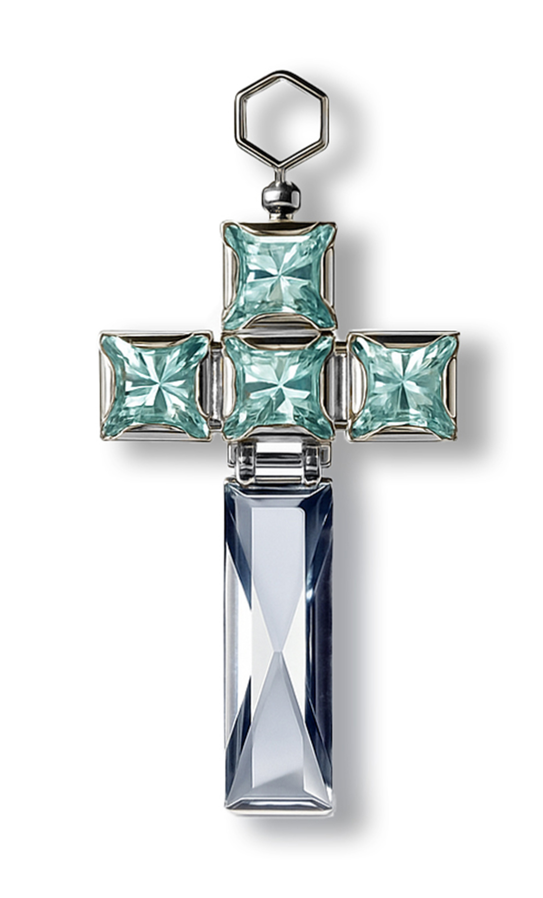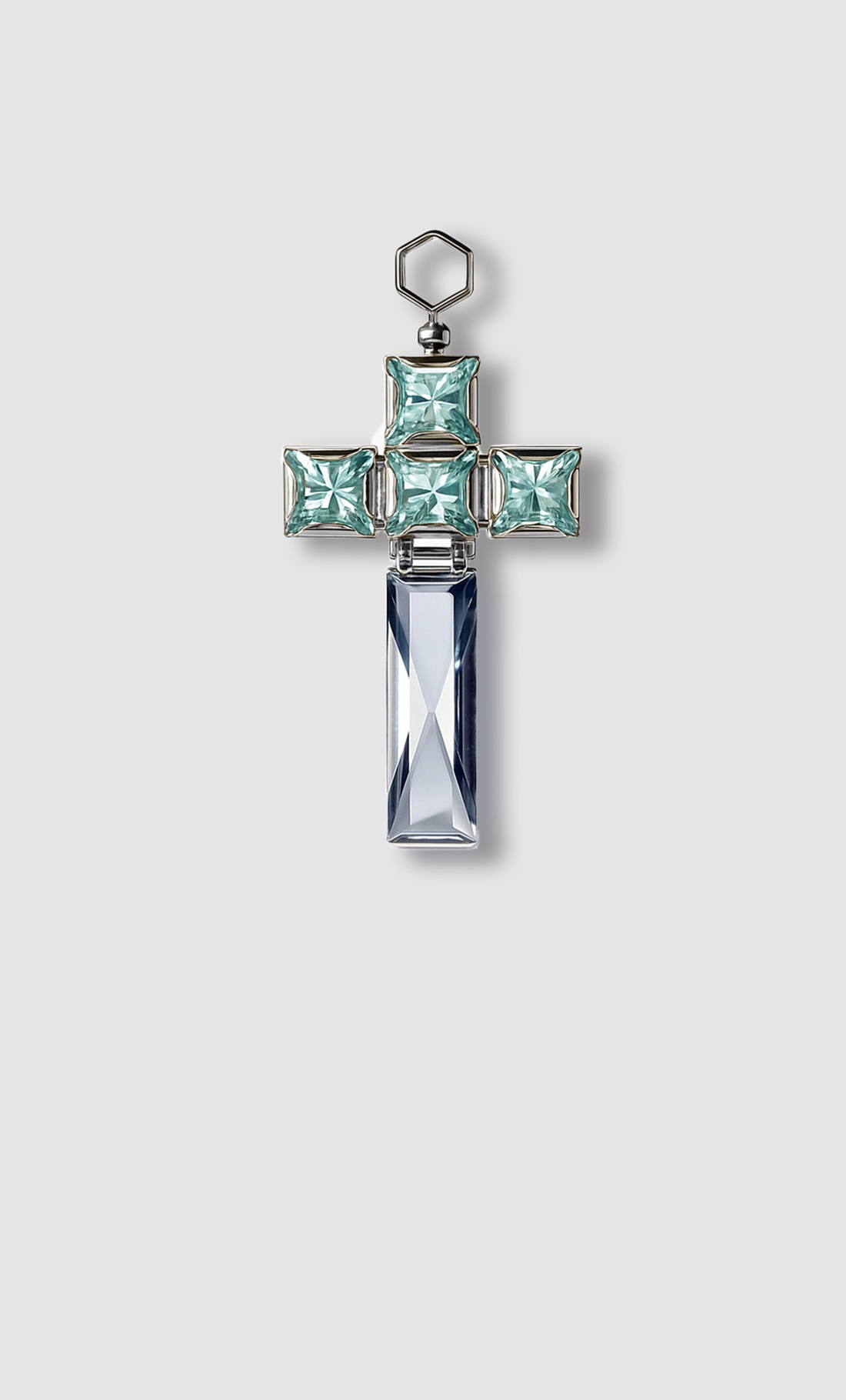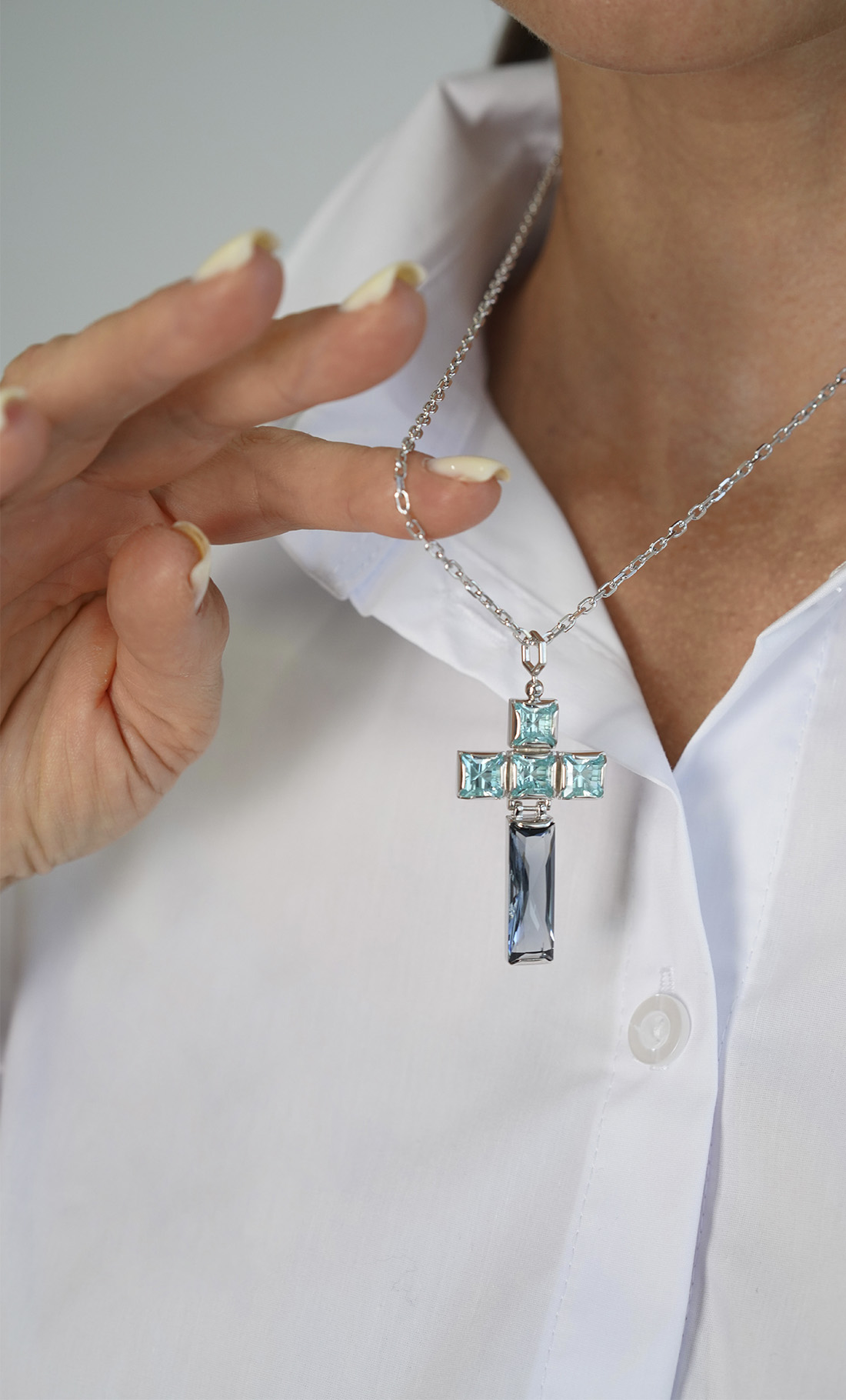 Эта форма — не символ веры, а карта твоей внутренней вселенной. Четыре кристалла небесного топаза — это твои точки опоры: ясность, спокойствие, честность и глубина. Твоя нерушимая основа.