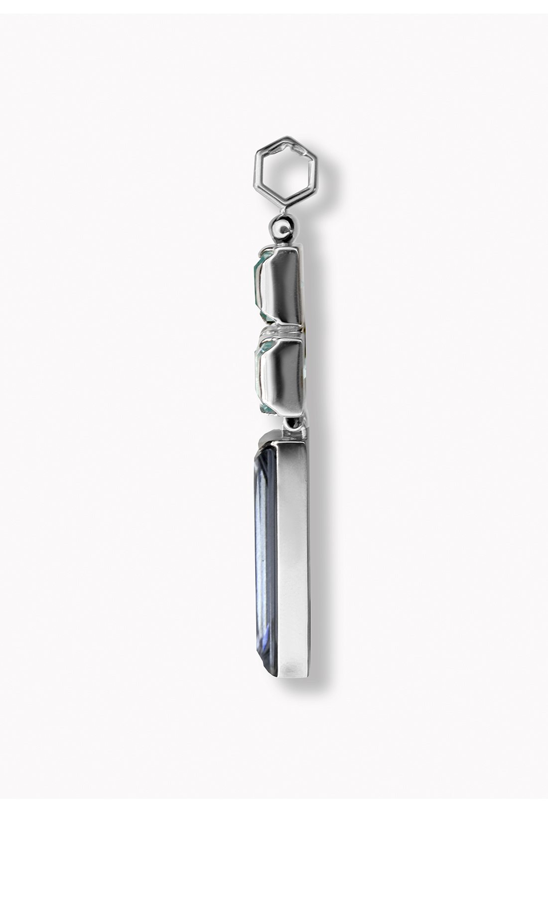 Вся конструкция построена вокруг движения. Подвеска свободно вращается вокруг своей оси, доказывая, что твой центр — это не жесткая константа, а живая, дышащая энергия. А восьмиугольная петля, символ бесконечности, — это твое право на постоянные перемены, сохраняя баланс.